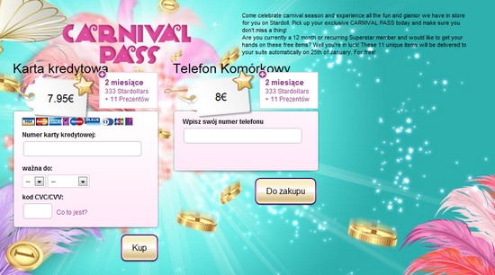 U nas jest oferta walentynkowa, a w innych krajach, m.in. Brazylii i Portugalii jest oferta związana z karnawałem. Za 8 € można wykupić Super Star na 2 miesiące + 333 stardollary + 11 prezentów, czyli w przeliczeniu na nasze złotówki my mamy dużo taniej w ofercie walentynkowej (23,37 zł). Co myślicie o tej ofercie?